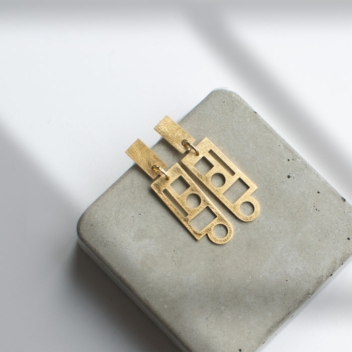 Juwelen met een knipoog naar de Interbellum architectuur, geïnspireerd op de vormentaal van de Art Deco en het Modernisme. Gentse voordeuren waren het uitgangspunt voor deze uitgepuurde geometrische designs. Of hoe wandelen door Gent altijd inspiratie geeft.